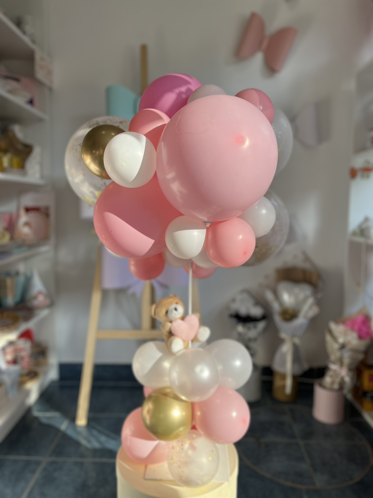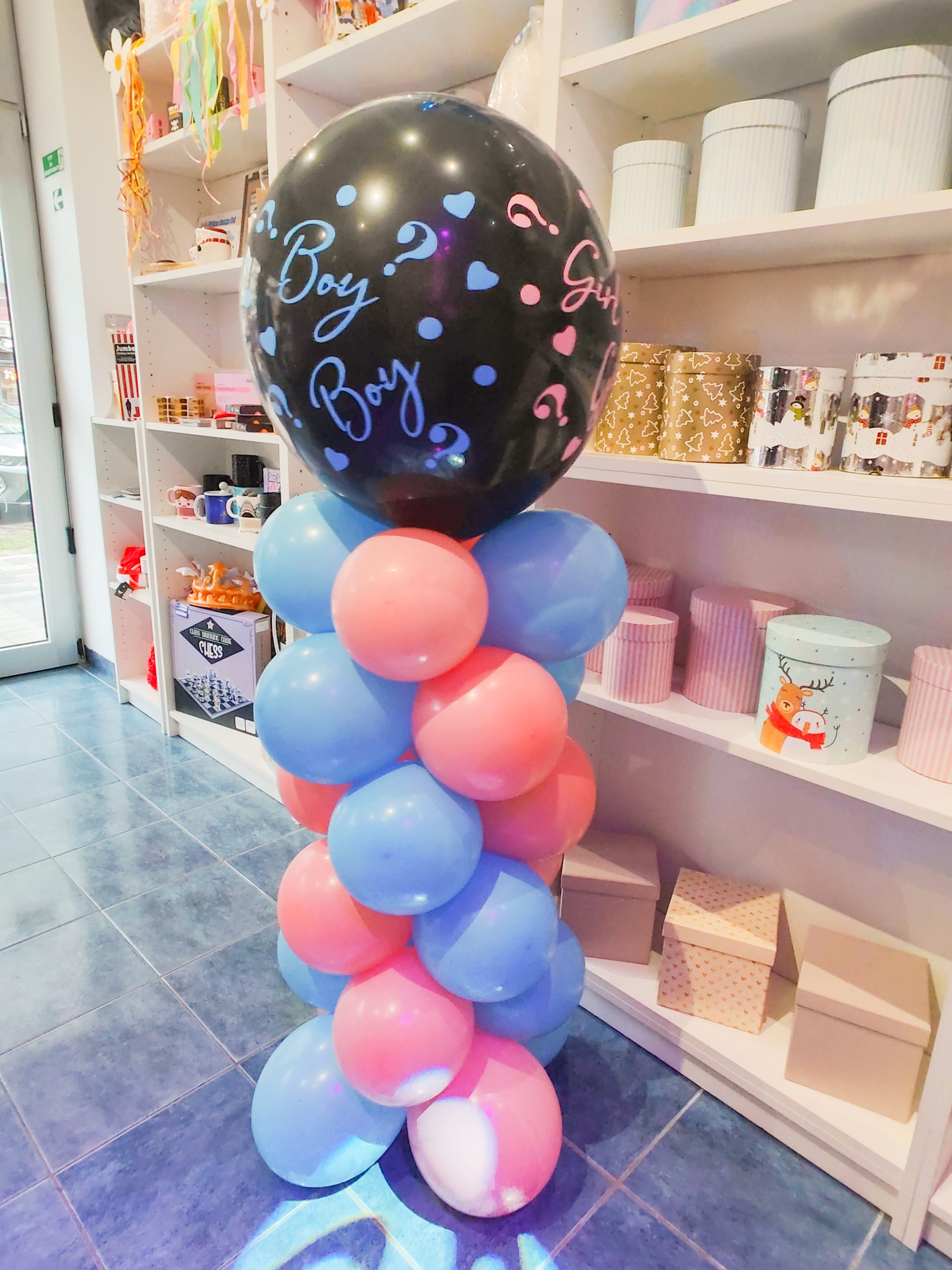 Balon za otkrivanje pola punimo malim balonima i konfetama u boji pola bebe a može da bude na helijum ili na vazduh sa ili bez postolja.